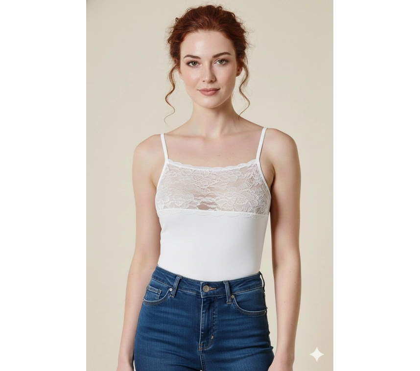 Göğsü dantelli çıtşıtlı body. Şık Beyaz geniş dantelli bady.