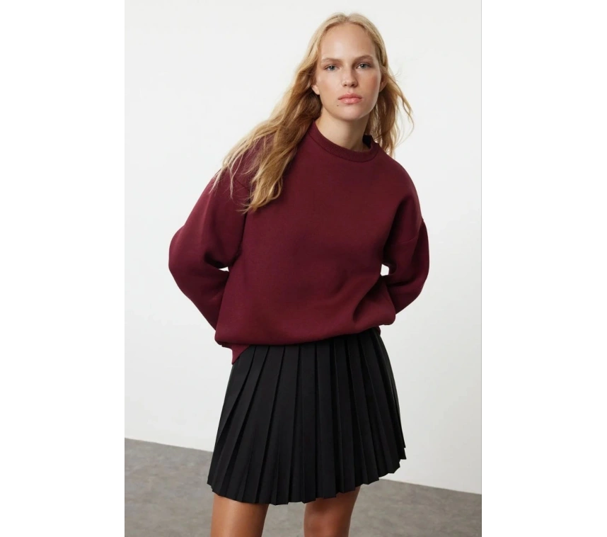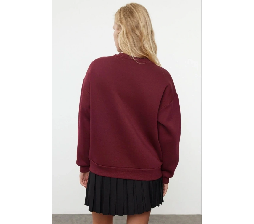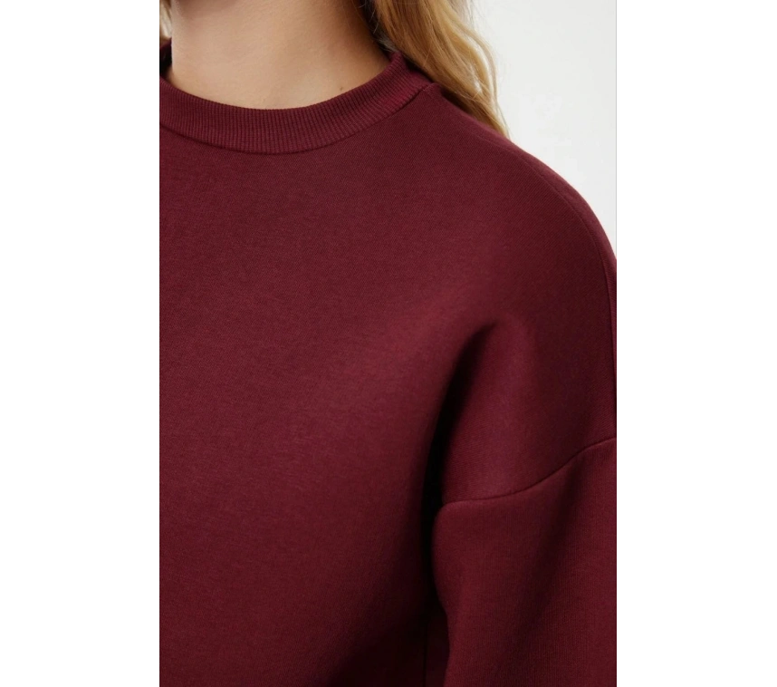3 İplik şardonlu Bisiklet Yaka Sweatshirt Bordo, günlük stilinizde şıklığı ve konforu bir arada arayan kadınlar için ideal bir seçim olacak.
