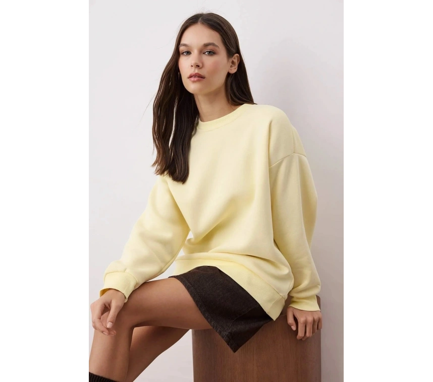 Sarı rengiyle dikkat çeken bu sweatshirt, enerjik ve canlı bir tarz yaratmanıza yardımcı olur.