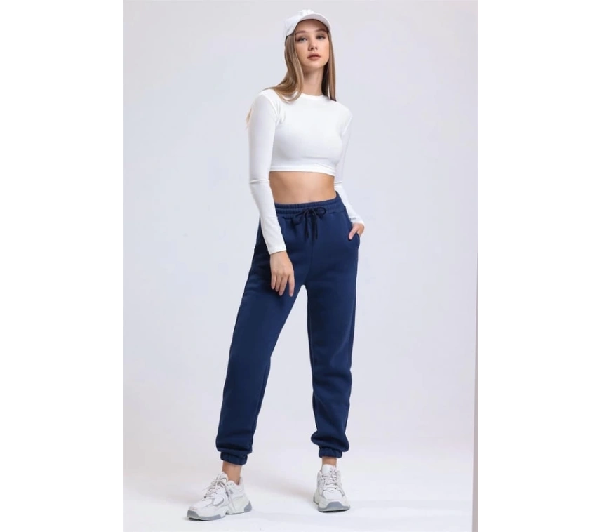 İşte spor yaparken ve günlük hayatta rahatlıkla tercih edebileceğiniz Lacivert 3 İplik Şardonlu Paça Lastikli Eşofman!