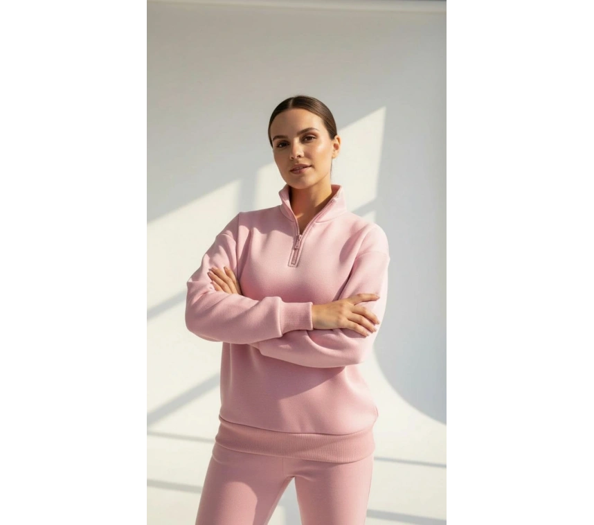 3 iplik Şardonlu yarım fermuarlı sweatshirtü ile tarzınızı konuşturun! Şıklığı ve rahatlığı bir arada sunan bu sweatshirt, somon rengiyle göz kamaştırıyor. İşte ürünün öne çıkan özellikleri: