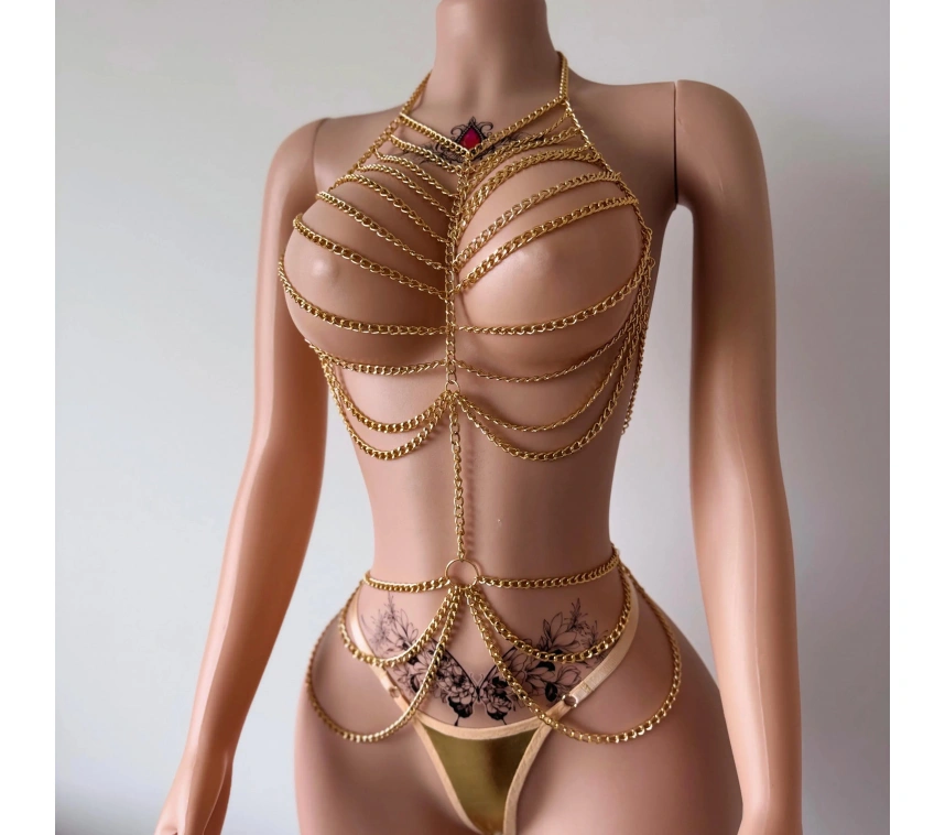 Malzeme: Hafif metal zincir, parlak şerit kumaş
