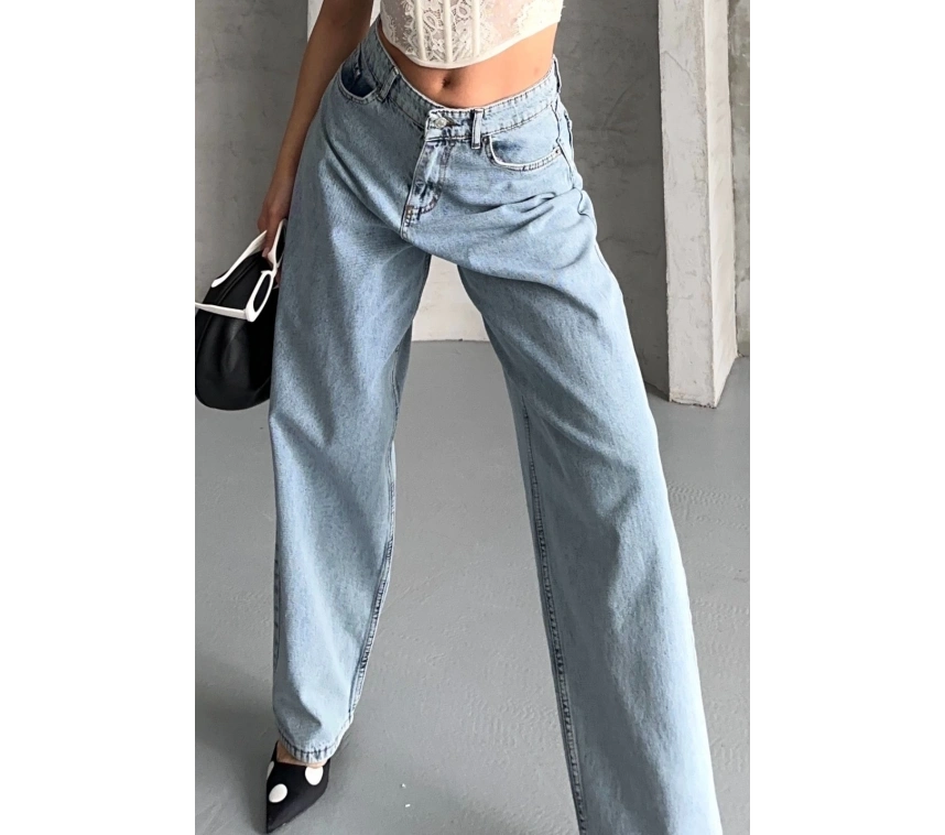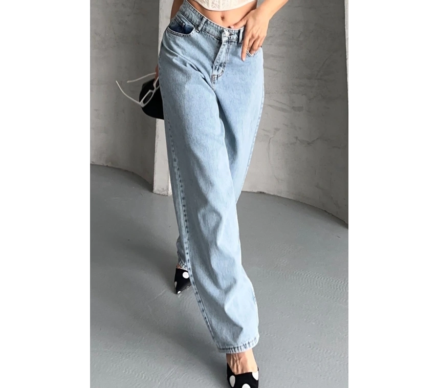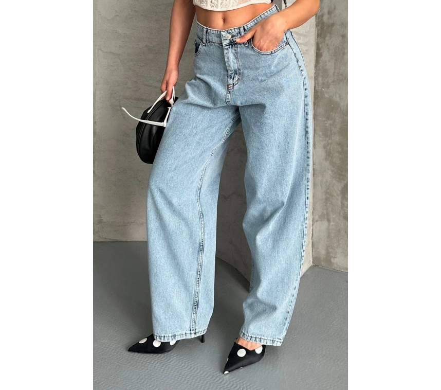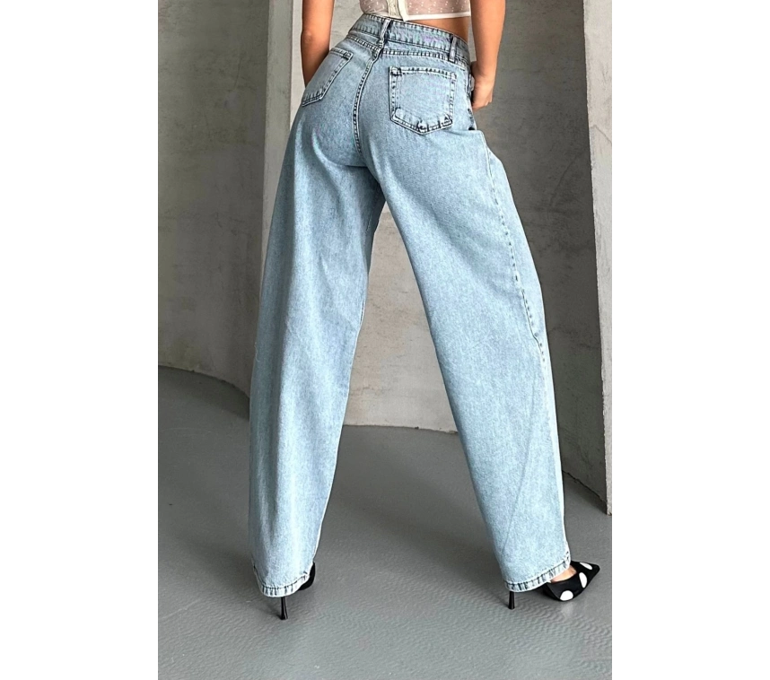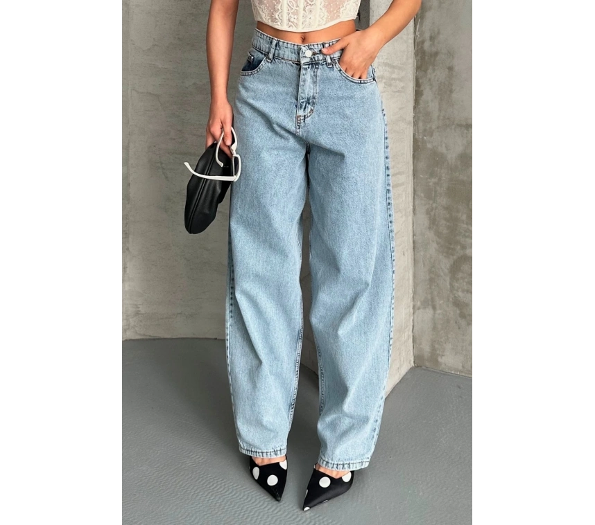 Baggy kar yıkama buz mavi jeans pantolon d2007, her kadının gardırobunda olması gereken şık ve rahat bir seçenektir.