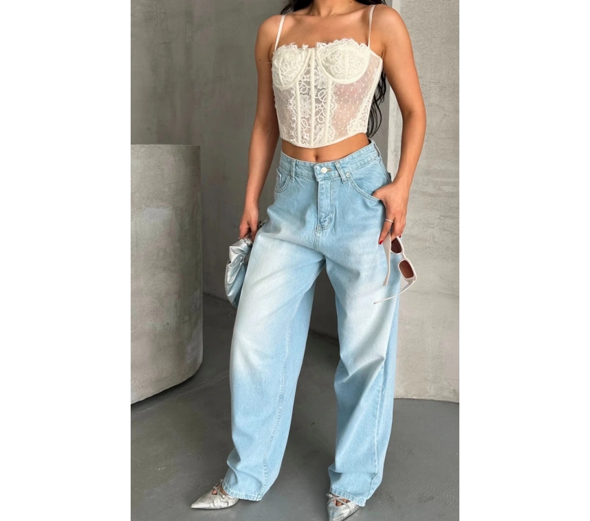 Baggy süper taş bıyık yıkama buz mavi d2007, kadın giyim kategorisinde yer alan bir pantolon jean modelidir.