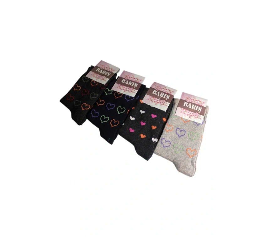 Barış Kalp Desenli Likralı Kadın Soket Çorap Adet