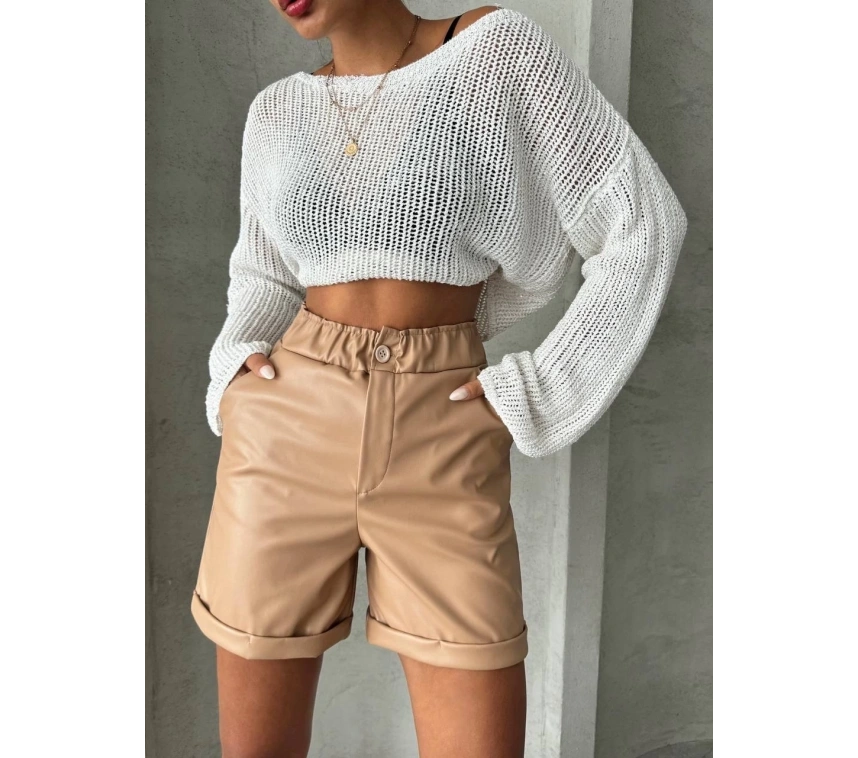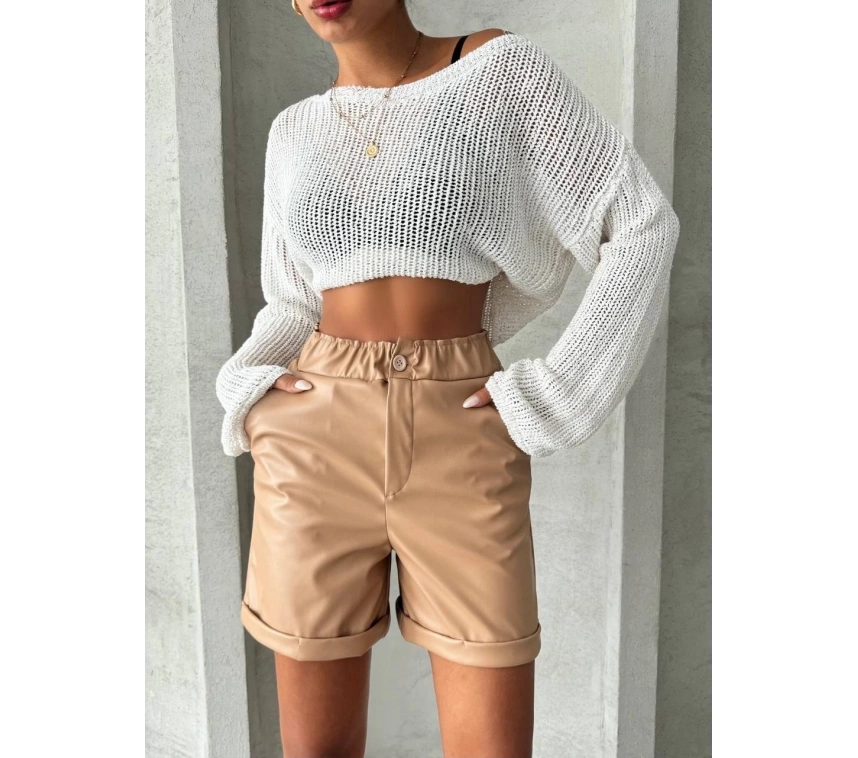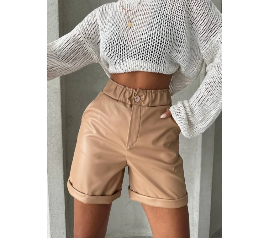 Beli lastikli duble paça deri şort bej w24755, şık ve rahat tasarımıyla öne çıkıyor. İster günlük şıklıkta kullanın, ister özel bir davette. İşte ürünün özellikleri: