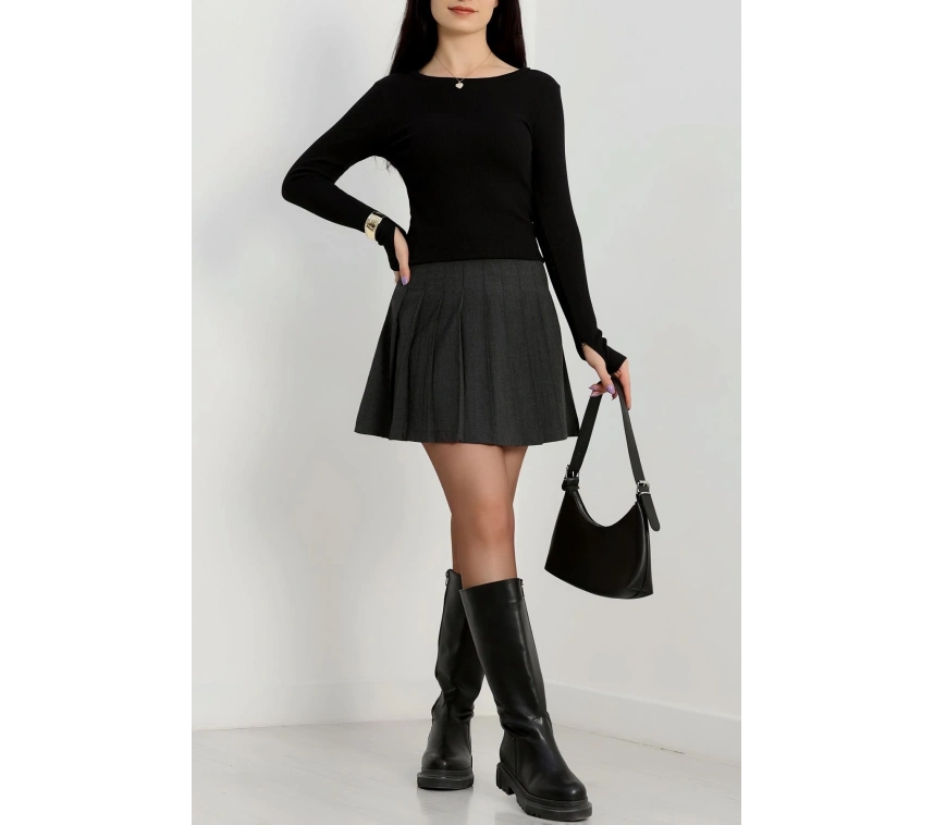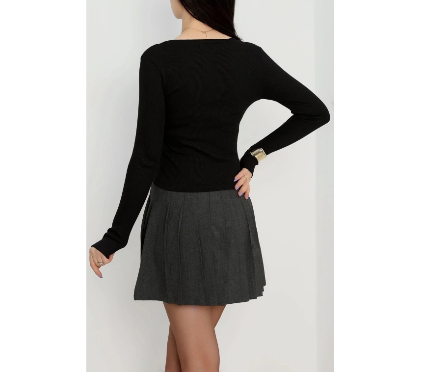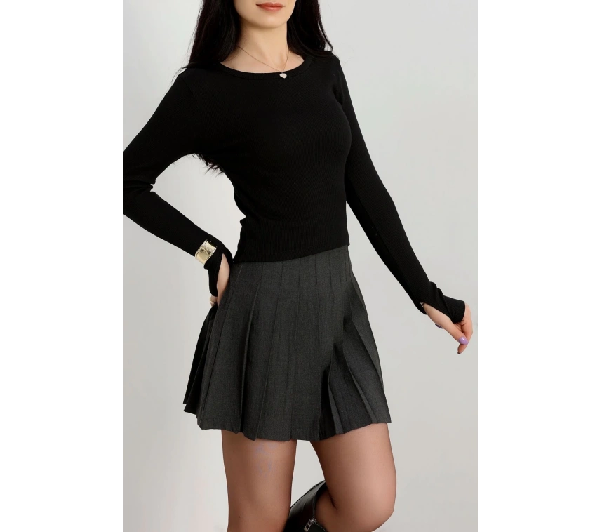Bisiklet Yaka Parmak Geçmeli Kaşkorse bluz siyah a3829, kadın giyim kategorisinde şıklık ve rahatlığı bir arada sunan bir üründür.