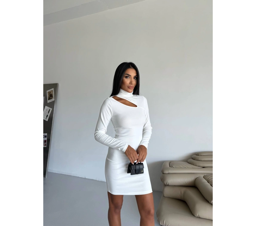 Boğazlı Göğüs Dekolteli Elbise Beyaz F2333