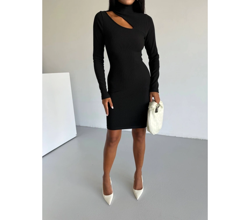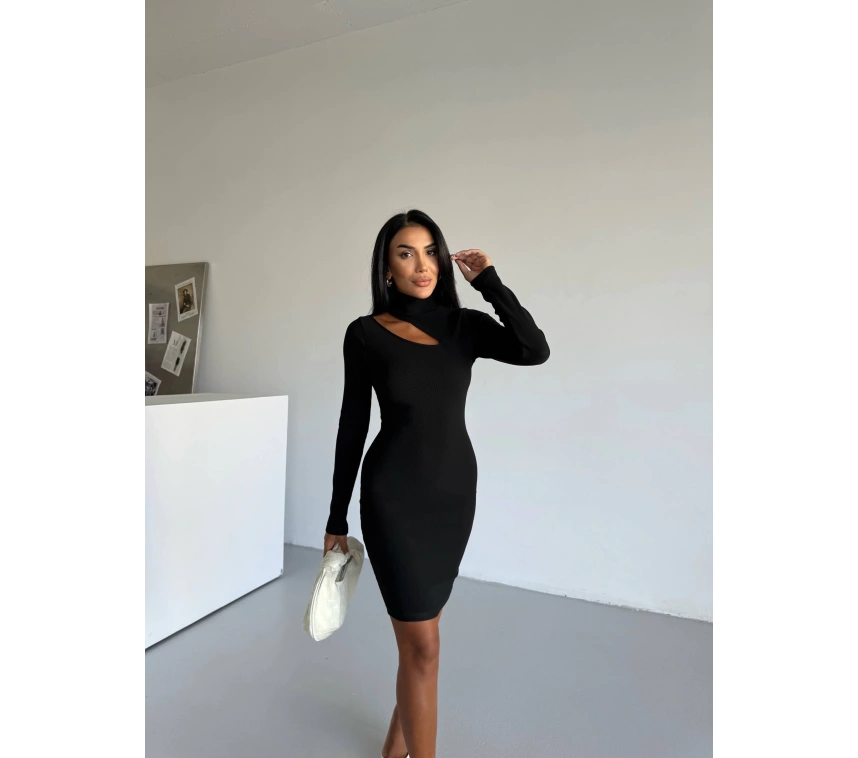 Şıklığınızı ve tarzınızı ön plana çıkarmak istiyorsanız siyah f2333 Boğazlı Göğüs Dekolteli Elbise tam da size göre!