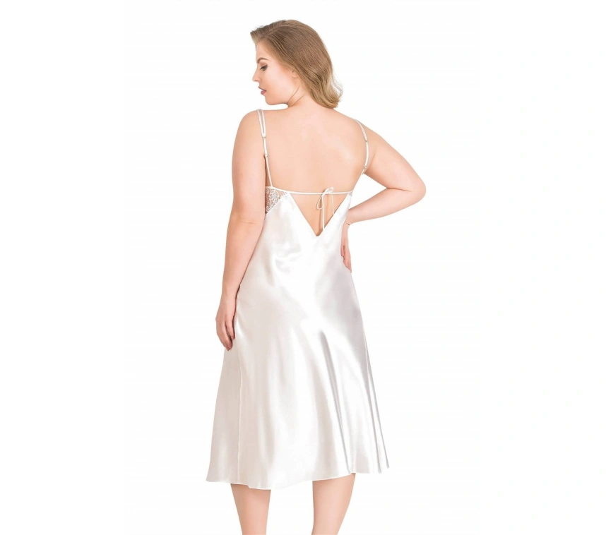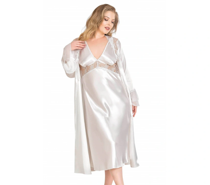 Büyük Beden Ekru Uzun İkili Saten Sabahlık Gecelik Takımı 6169