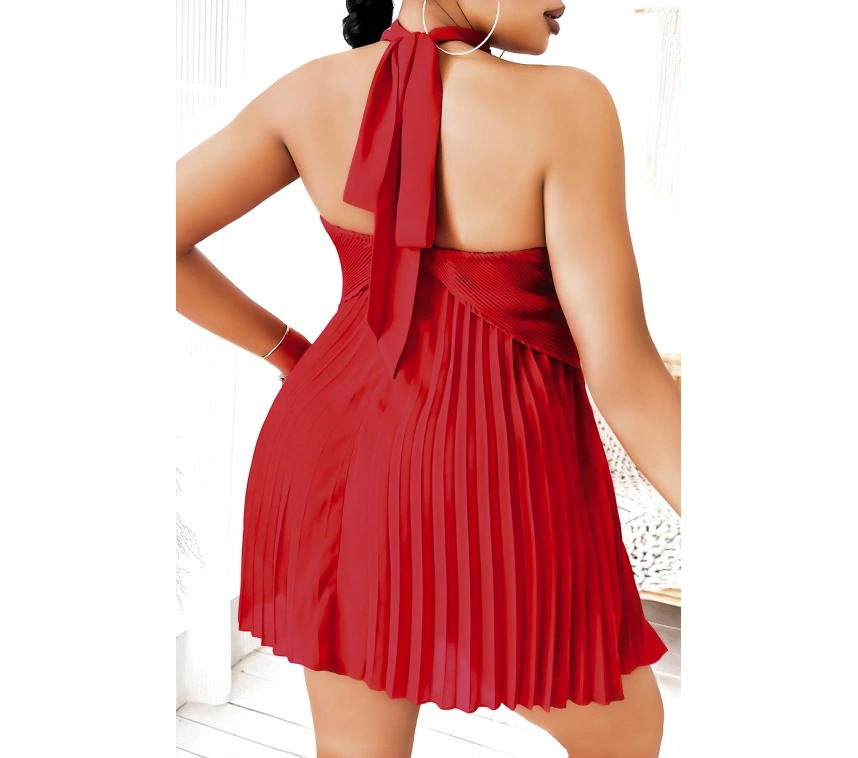 Büyük Beden Kırmızı Fırfırlı Boyundan Bağlamalı Gecelik, hem şık hem baştan çıkarıcı detaylarıyla gecelere tutku katıyor.