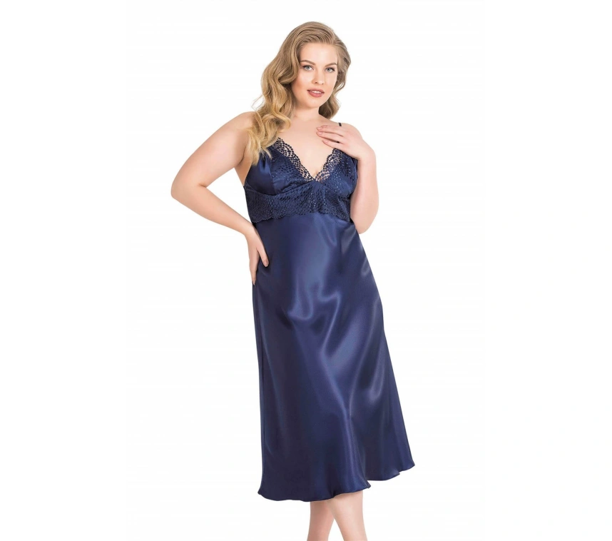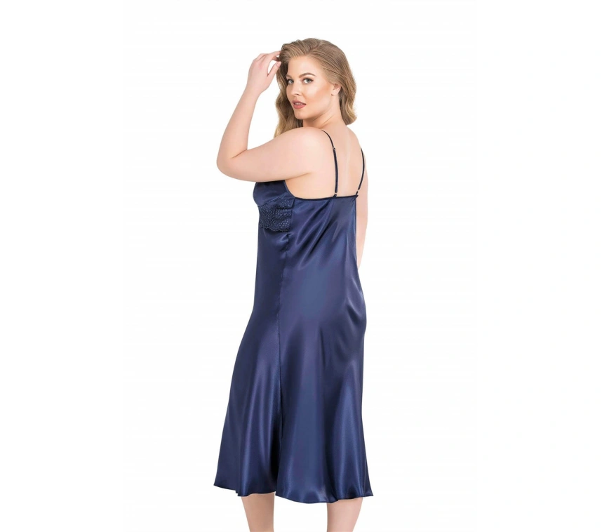 Büyük Beden Lacivert Uzun İkili Saten Sabahlık Gecelik Takımı 6170