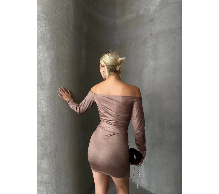 Yeni sezonun trendlerini yansıtan şıklığı Buğulu Etek Bluz Takım Kahve S24709 ile keşfedin.