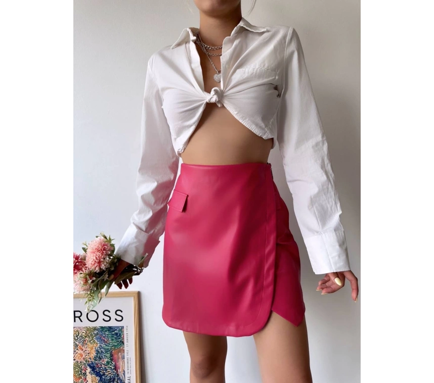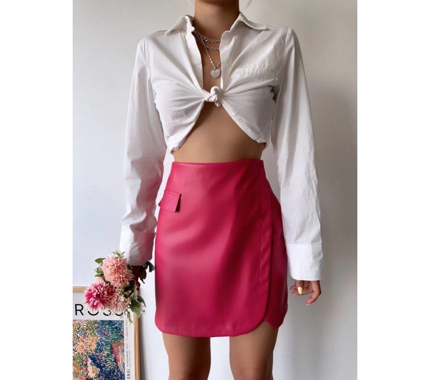 Şıklığı ve zarafeti bir arada sunan Cep detaylı oval kapaklı deri etek fuşya h240048, gardırobunuzun vazgeçilmez parçası olmaya aday.