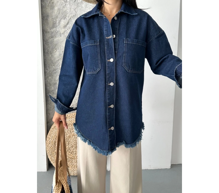 Bu şık ceketi günlük giyimde jean pantolonlarınızla, eteklerinizle veya elbiselerinizle kombinleyerek farklı tarzlar yaratabilirsiniz. Farklı beden seçenekleri ile sunulan cepli püsküllü kar yıkama kot ceket koyu mavi D2515, tarzınızı tamamlamanızı sağlayacak!