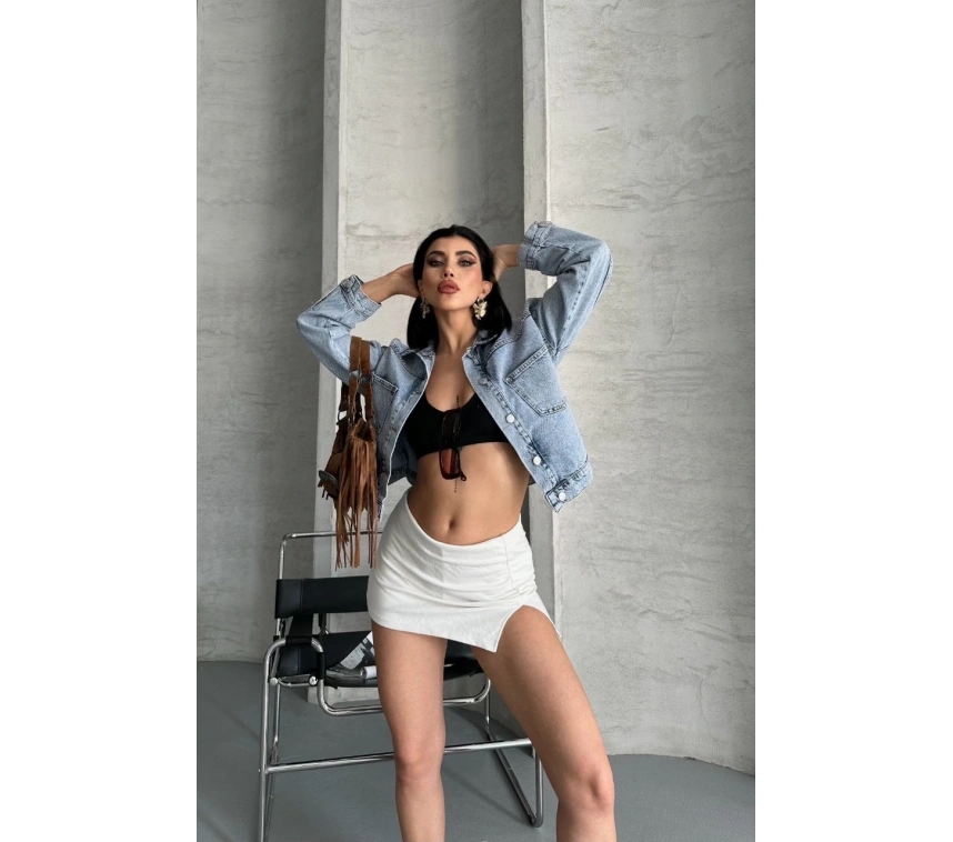 Tarzınızı yansıtan ve kombinlerinize şıklık katacak Çift Cepli Kol Katlamalı Kar Yıkama Crop Kot Ceket Mavi, gardırobunuzun vazgeçilmez parçalarından biri olmaya aday!