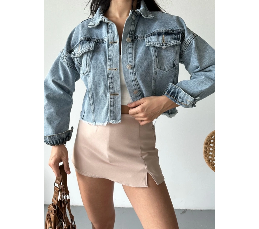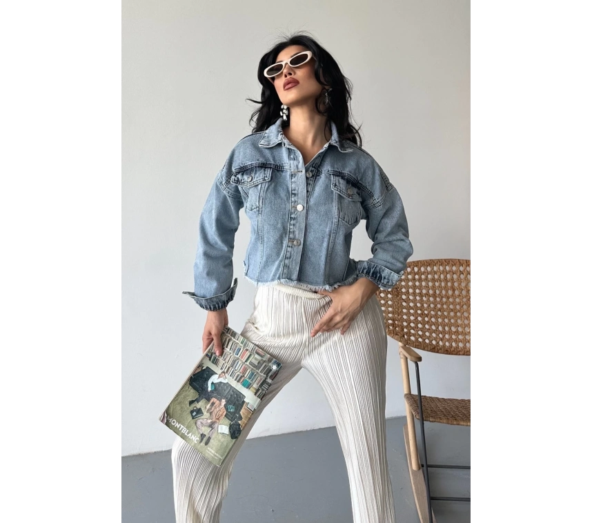 Ürün Adı: Çift kapaklı püsküllü crop buz mavi d2002