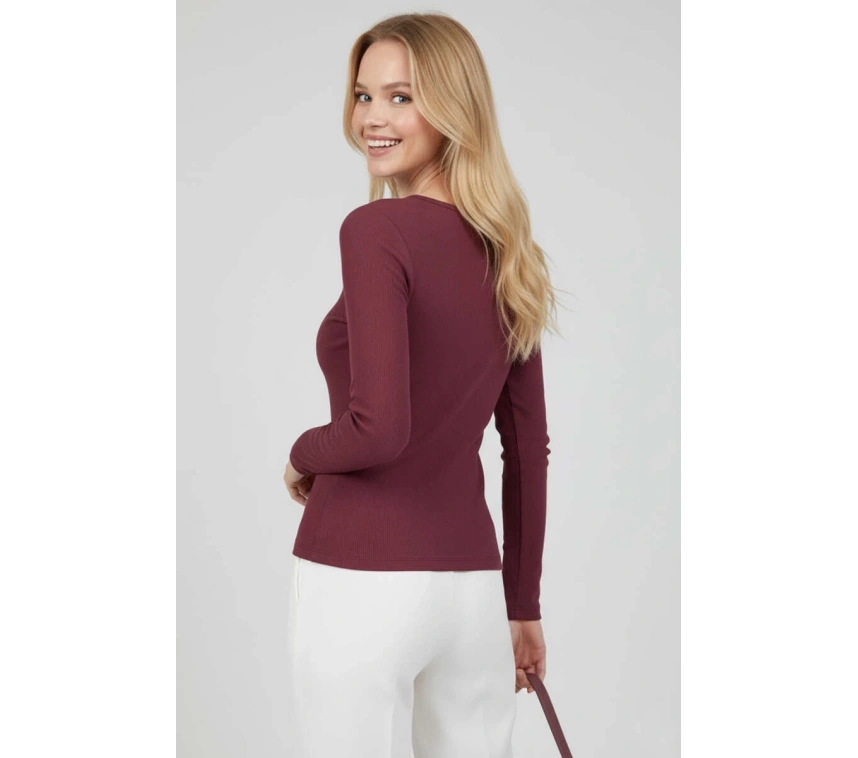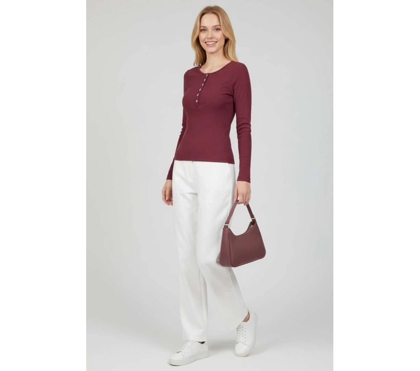 Çıtçıt Detaylı Bluz Mürdüm T4343, şıklığı ve rahatlığı bir arada sunuyor.