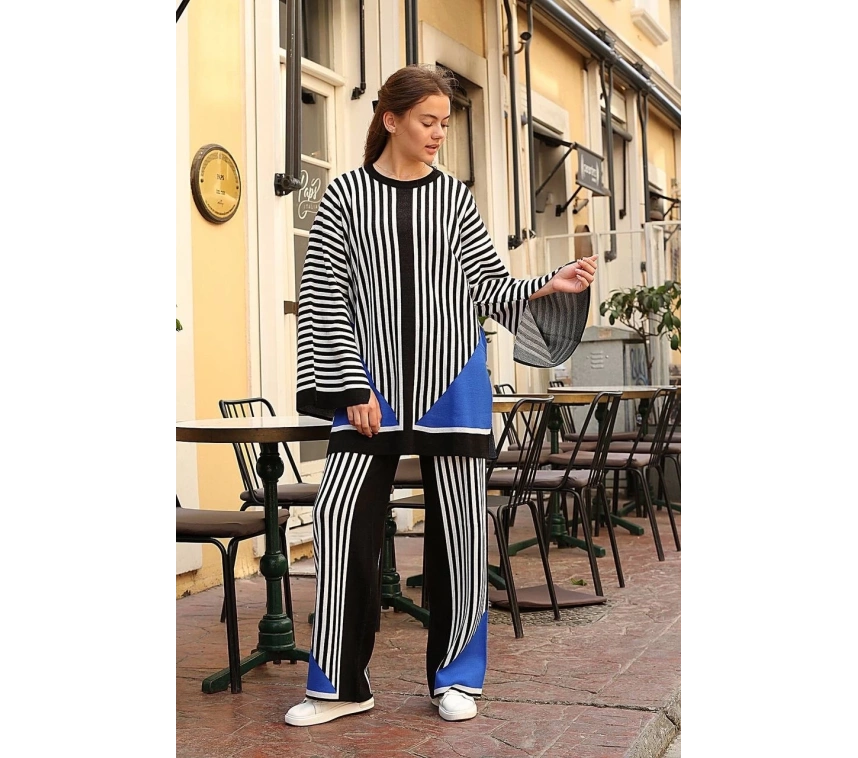 Kadın Giyim kategorisinde yer alan çizgili bisiklet yaka triko takım siyah ile tarzınızı ve konforunuzu bir arada yaşayın.