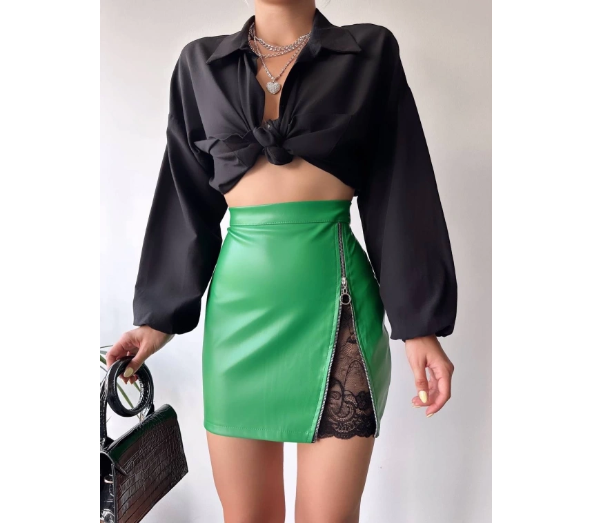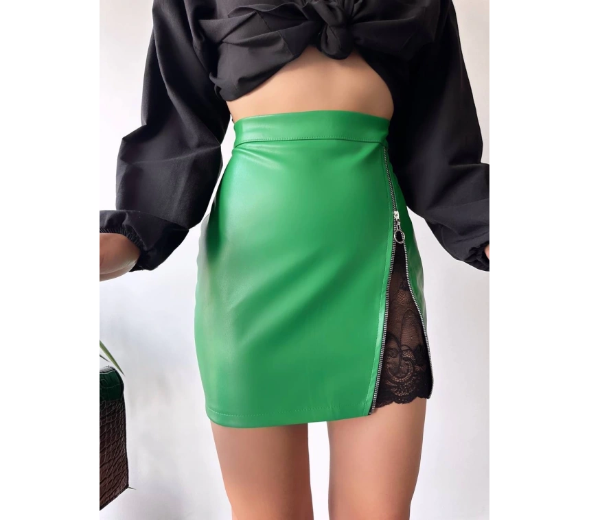 Bu dantelli fermuarlı deri etek, gardırobunuzdaki en şık parçalardan biri olmaya aday!