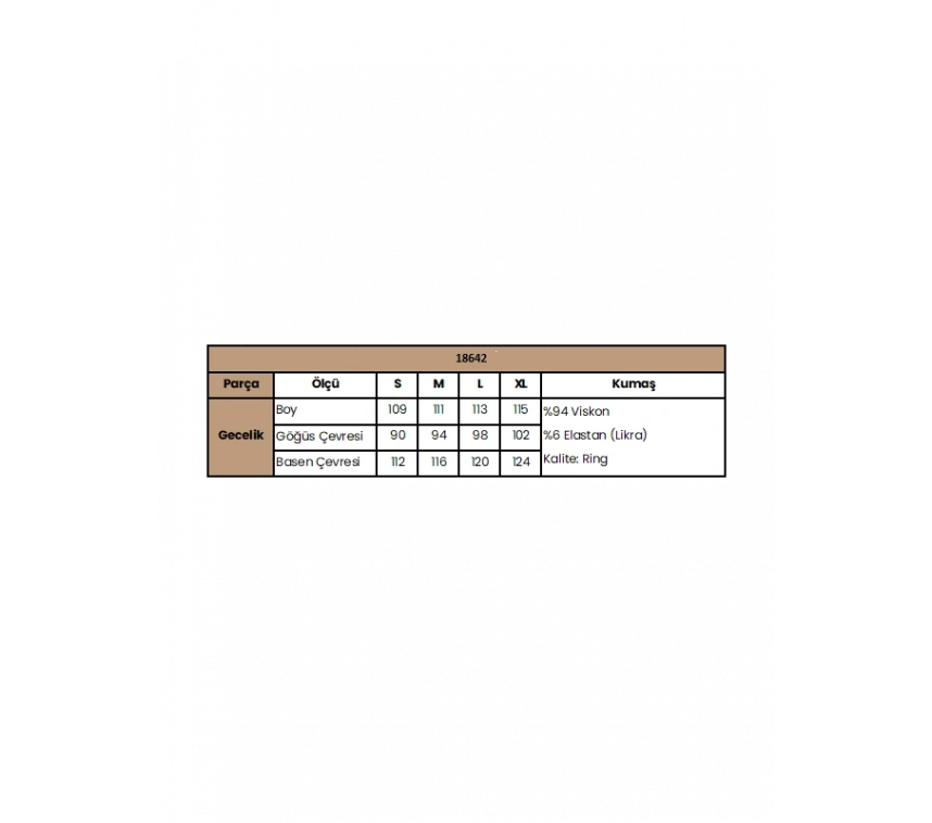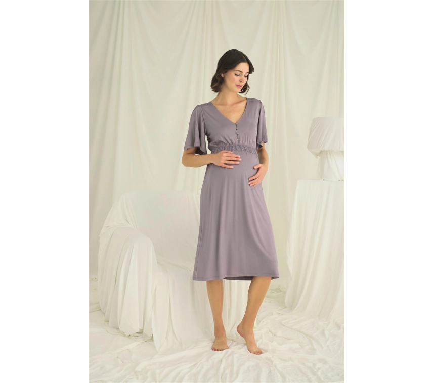 Gecelik: Gri renklidir, V yakalıdır, kolu ve beli dantellidir, yakasının altı düğmelidir, emzirme için düğmelerden açılır durumdadır, kısa kolludur, örme kumaştır.