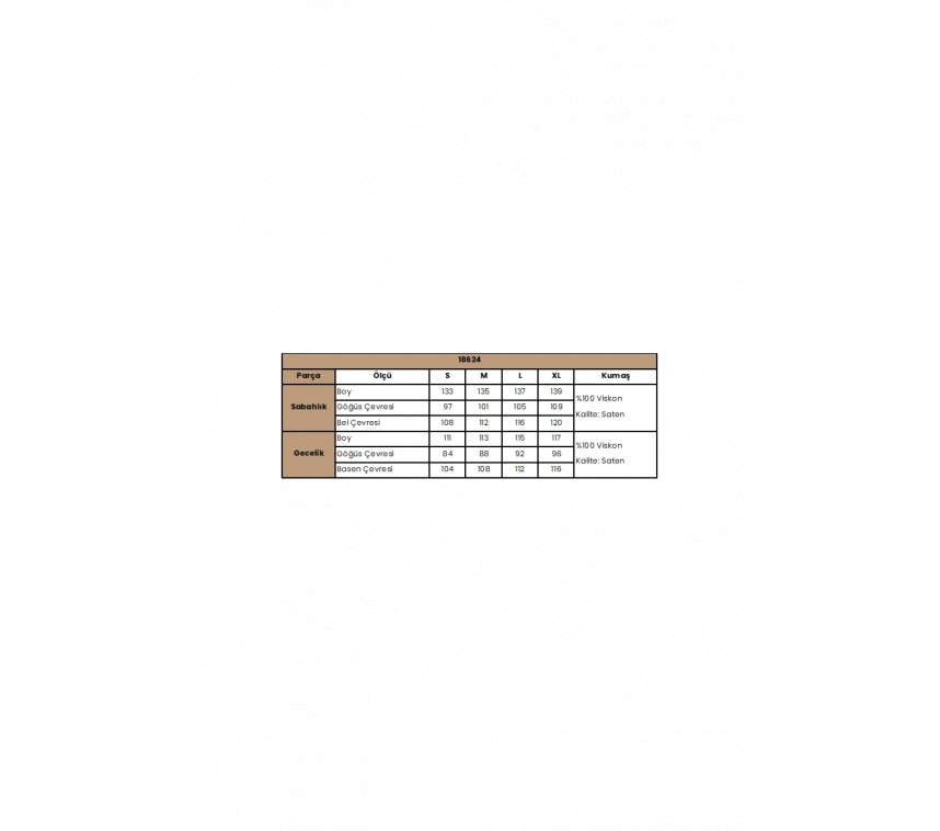 Gecelik: Siyah renklidir, derin V yakalıdır, göğüs ve sırt dekoltelidir, yaka üst kısmı tüllüdür, yaka alt kısmı dantellidir, yırtmaçlıdır, ayarlanabilir ip askılıdır, dokuma kumaştır.