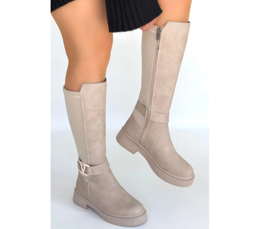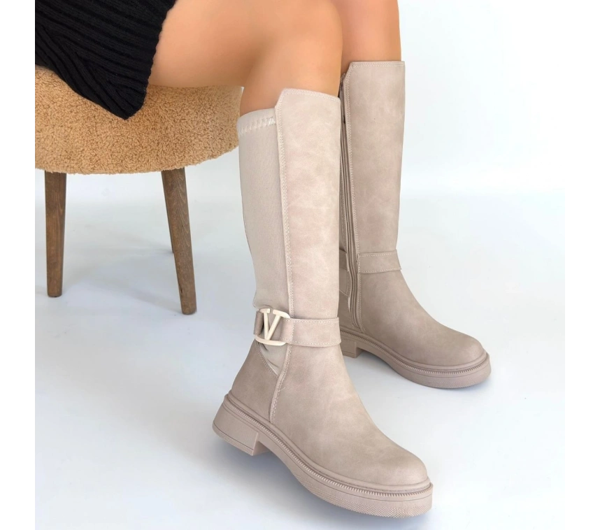 Detay: Topuklu Yandan Fermuarlı Diz Altı Çizme