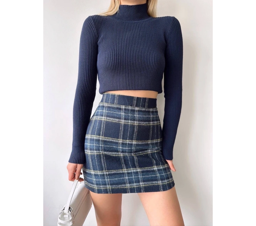 Ekoseli kaşe etek lacivert renk seçeneği ile tarzınızı tamamlayacak şık bir parçadır. Sağlam ve kaliteli kumaşı sayesinde uzun süre boyunca kullanabilirsiniz. İster günlük hayatta isterseniz özel davetlerde rahatlıkla tercih edebilirsiniz.