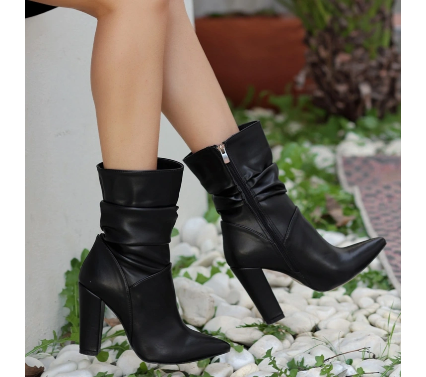 Detay: Topuklu Yandan Fermuarlı Körüklü