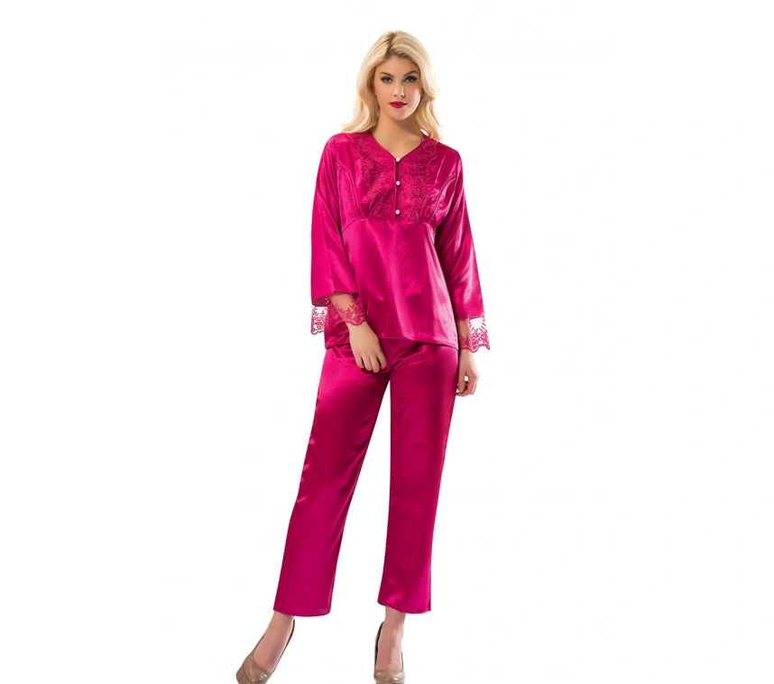 Lesca Fuşya Saten Pijama Takımı - 1595