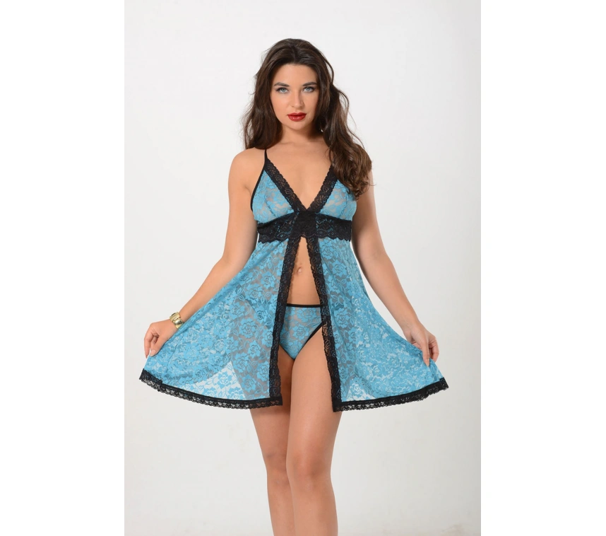 Lesca Açık Mavi Beyaz Dantelli Gecelik - 686