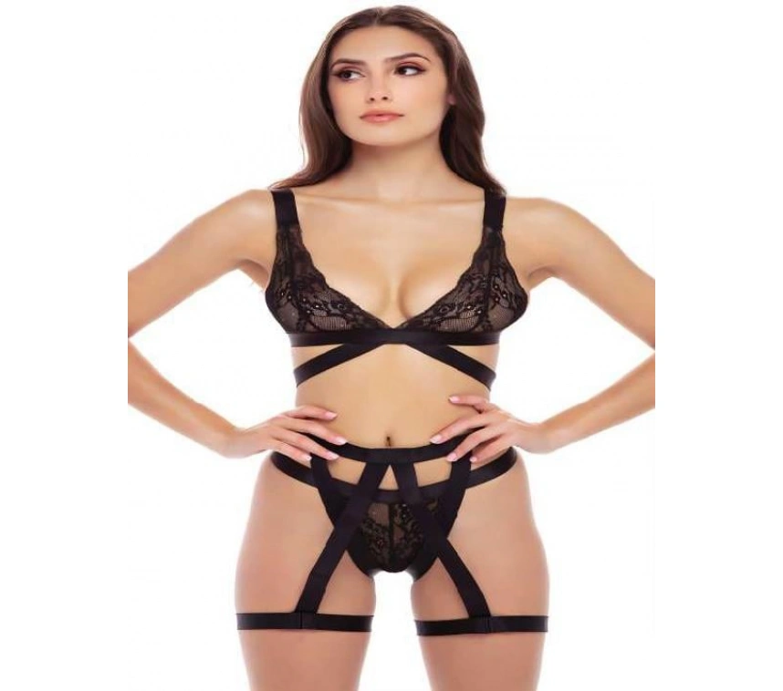 Siyah İp Aksesuarlı Fantezi Jartiyer Takım