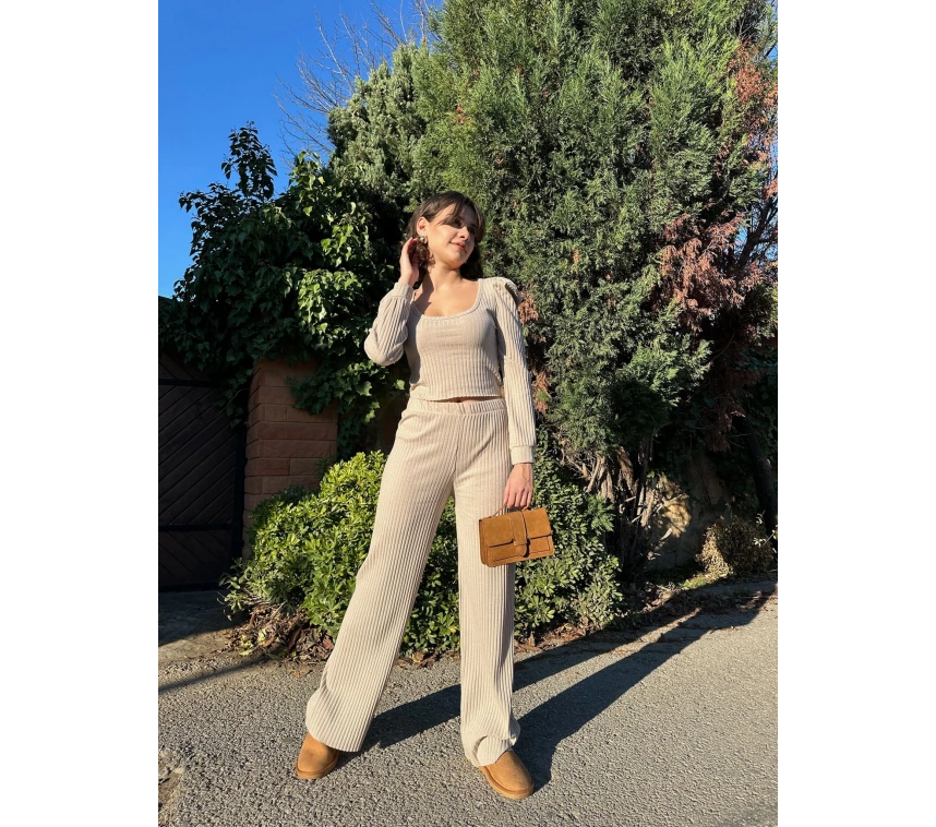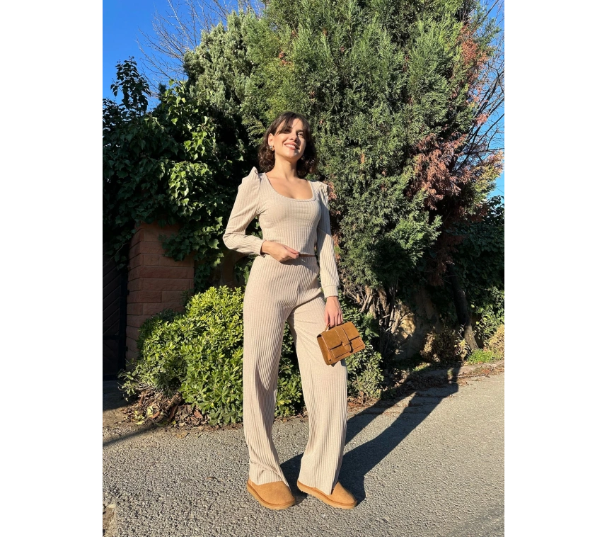 Kadın giyimde şıklığı ve rahatlığı bir arada sunan Fitilli prenses kol alt üst takım bej, gardırobunuzun vazgeçilmezi olmaya aday! İşte bu muhteşem takımın özellikleri: