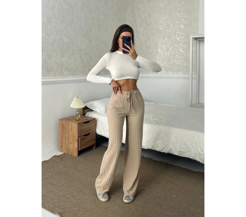 FITILLI ŞARDONLU PANTOLON BEJ A4058, şıklığı ve rahatlığı bir arada sunar.