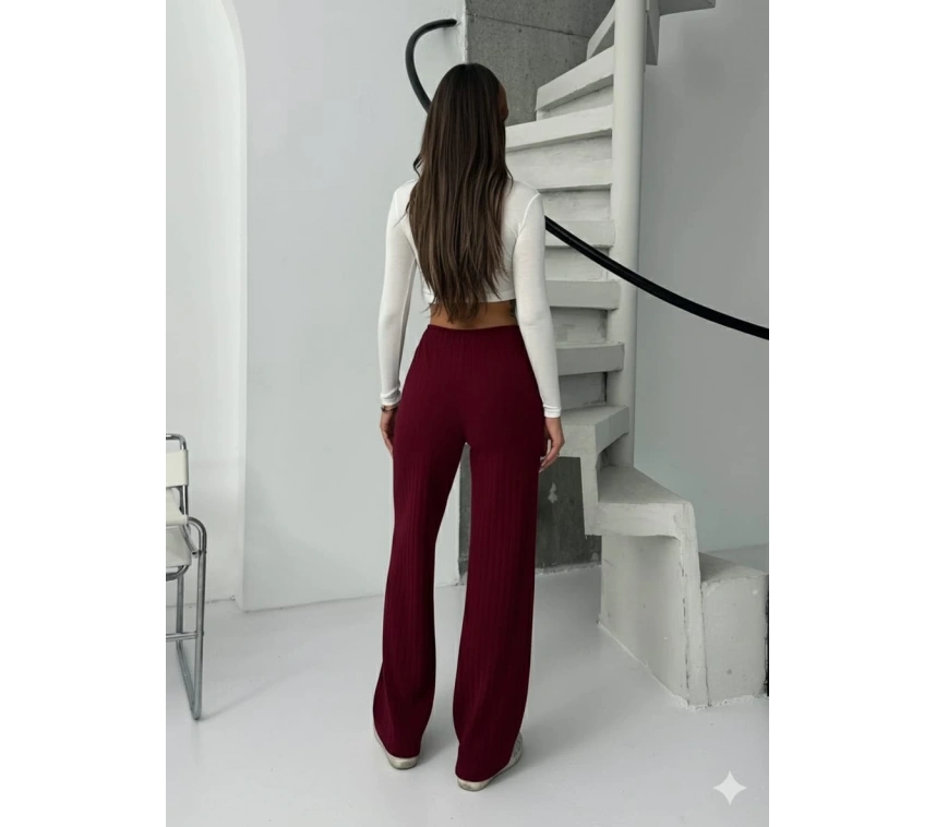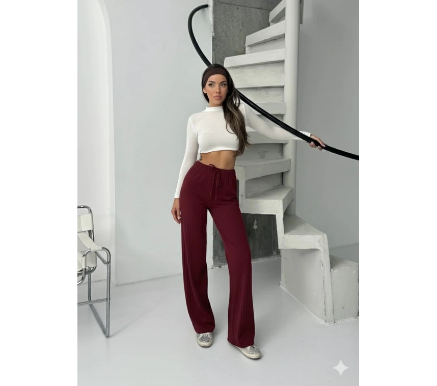 Fitilli şardonlu pantolon bordo renk seçeneği ile gardırobunuzda şıklığı ve rahatlığı bir arada bulabilirsiniz.