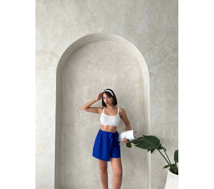 Fiyonklu Şort Etek Saks S255021 ile hem günlük hayatta hem de özel günlerde tarzınızı yansıtabilirsiniz. Şıklık ve konfor arayan kadınların favorisi olmaya aday!