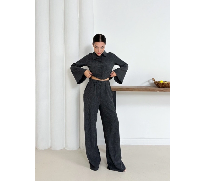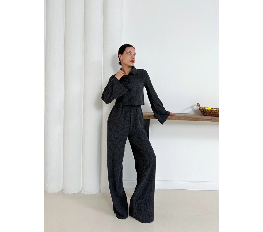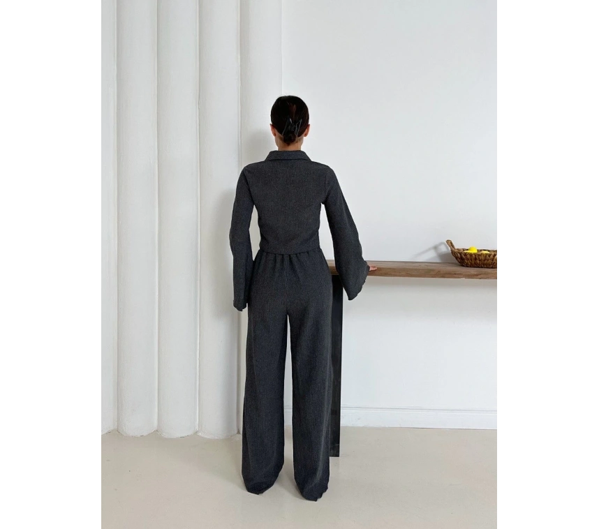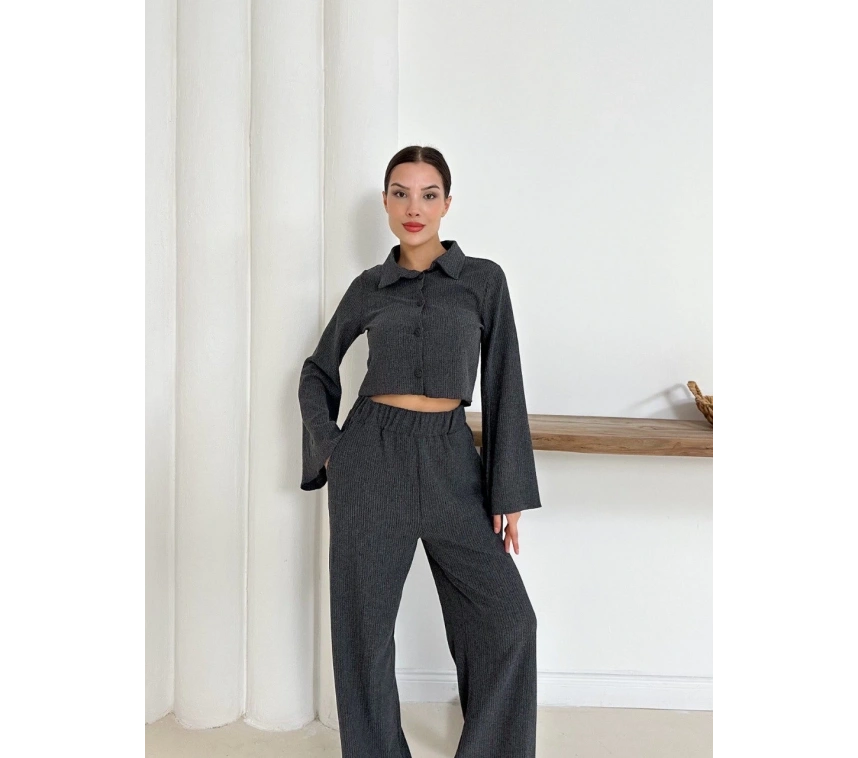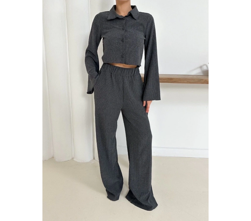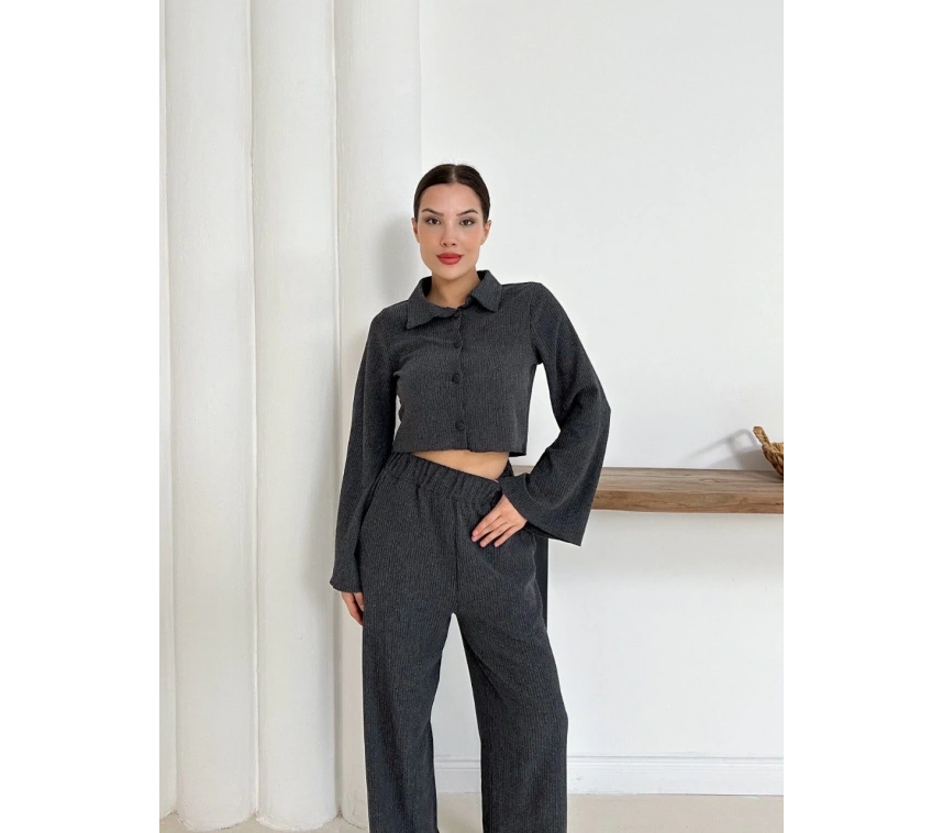 Şıklığı ve zarafeti bir arada sunan Gömlek Yaka Kaplama Düğmeli Takım Antrasit ST265866 ile öne çıkın.