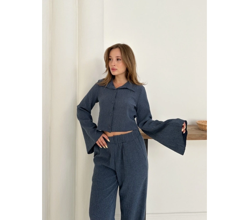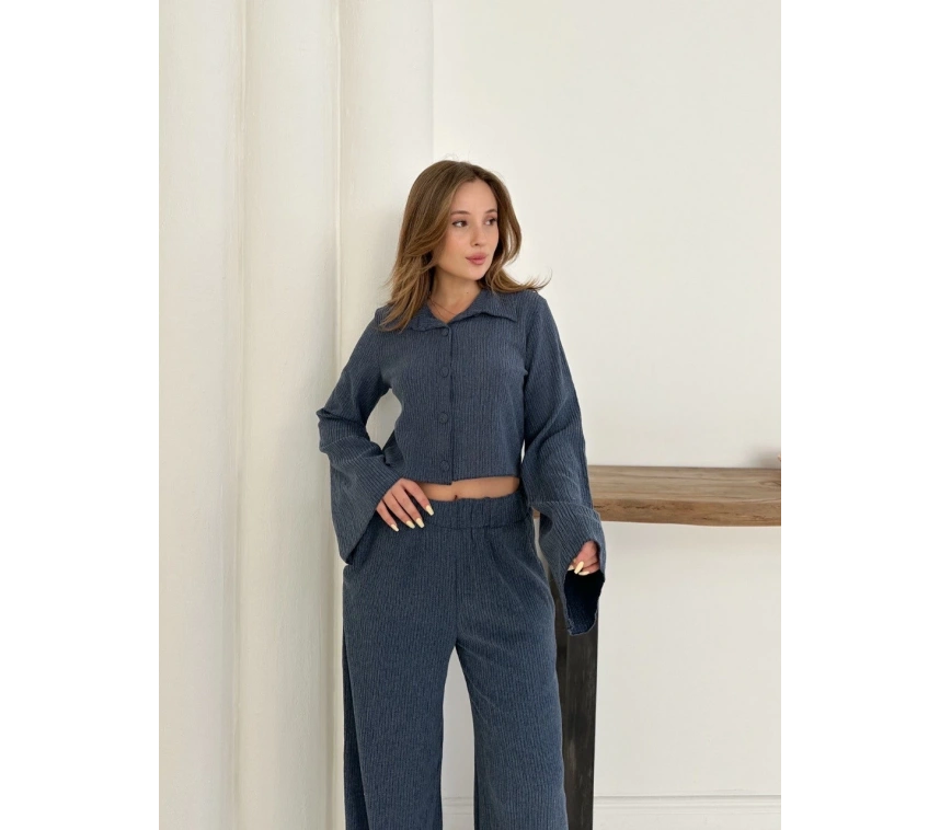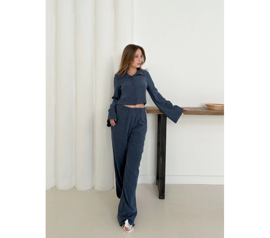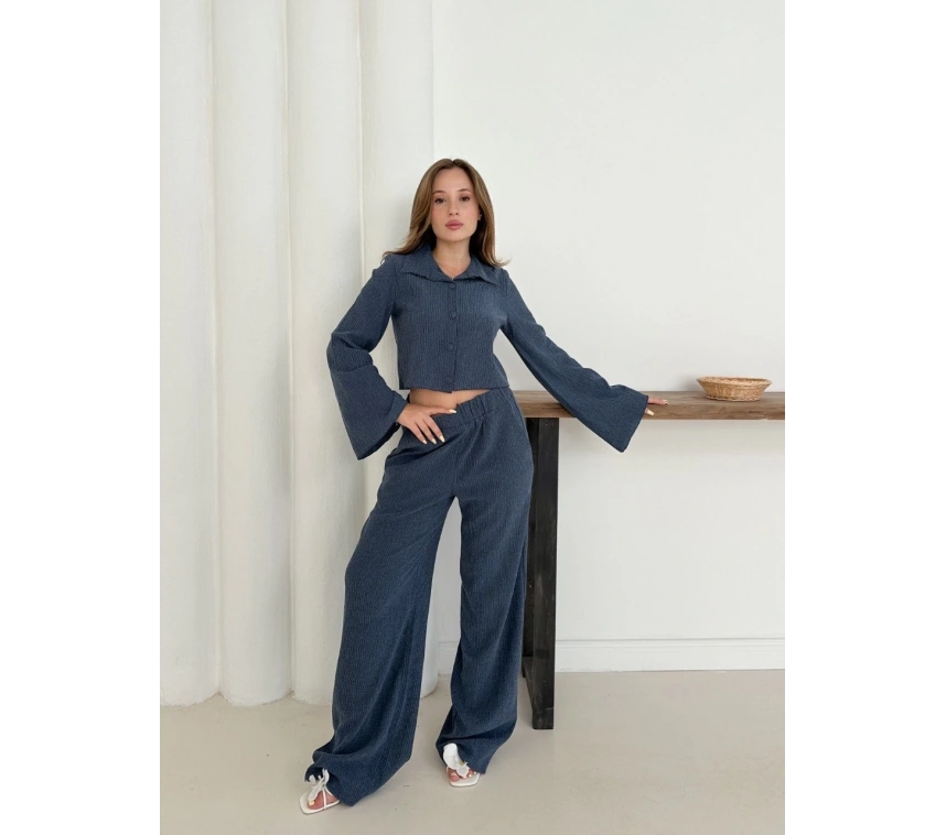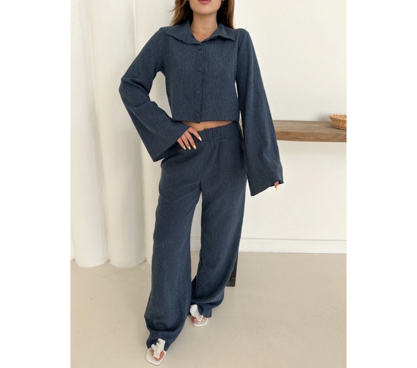 Farklı ve şık bir görünüm için ideal bir seçenek olan Lacivert Gömlek Yaka Kaplama Düğmeli Takım, gardırobunuzun vazgeçilmezi olmaya aday! Hem şıklığı hem de rahatlığı bir arada sunan bu takım, kusursuz bir tarz yaratmanıza yardımcı olacak.
