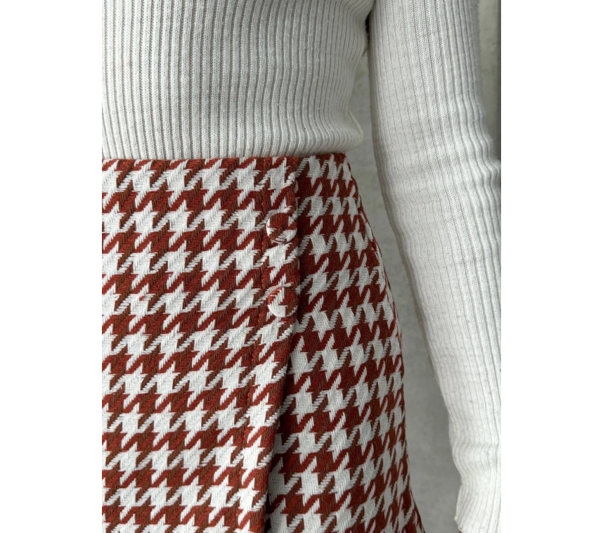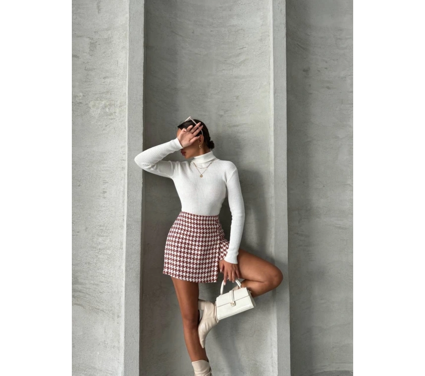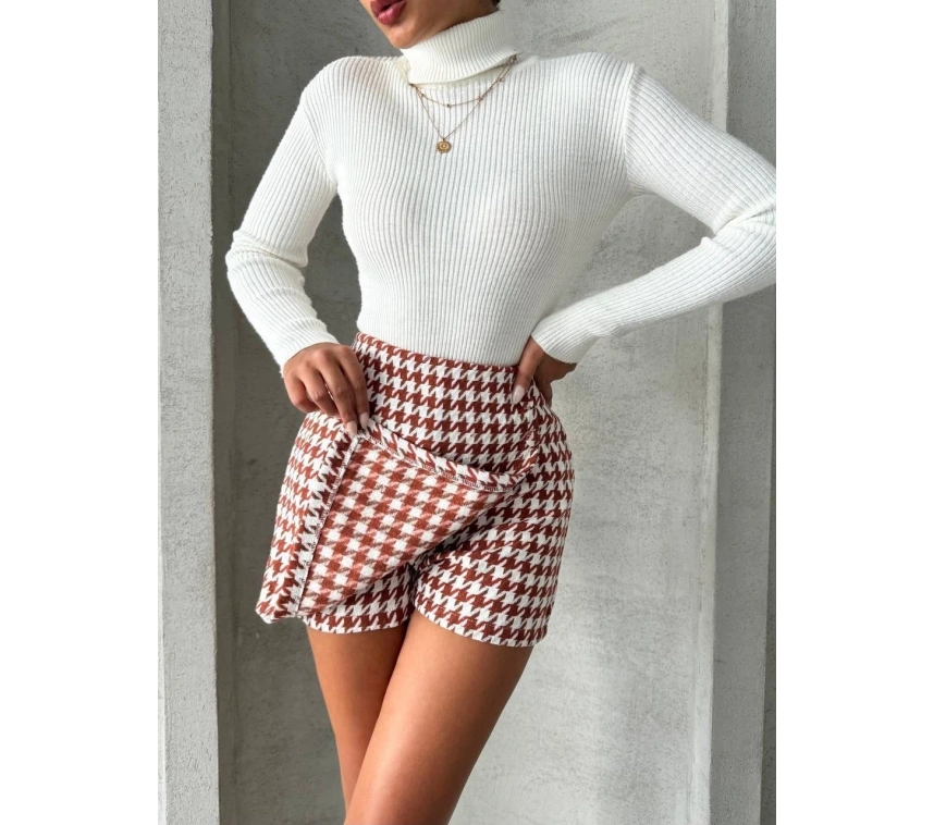 CH markasının iki düğmeli kaz ayağı desenli şort eteği, şıklık ve rahatlığı bir arada sunuyor. İnce kumaşı ile yaz aylarında serin kalmanızı sağlarken, bordo ve beyaz rengin harika kombinasyonuyla tarzınızı ön plana çıkarmanıza yardımcı olur.