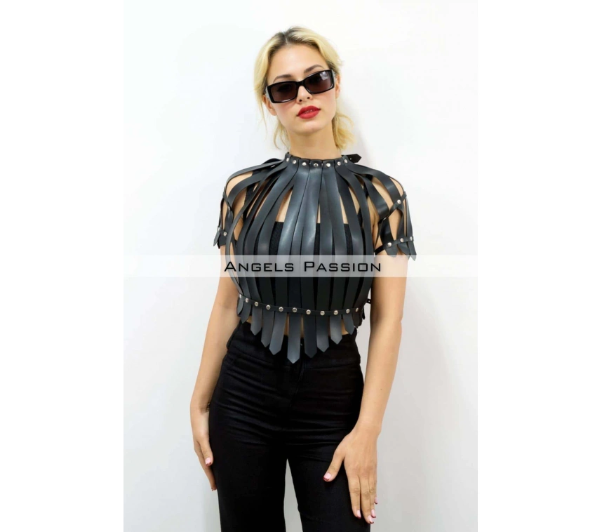 Crop Büstiyer Harness, Deri Göğüs Harness, Gömlek Üzeri Harness - Brf1257