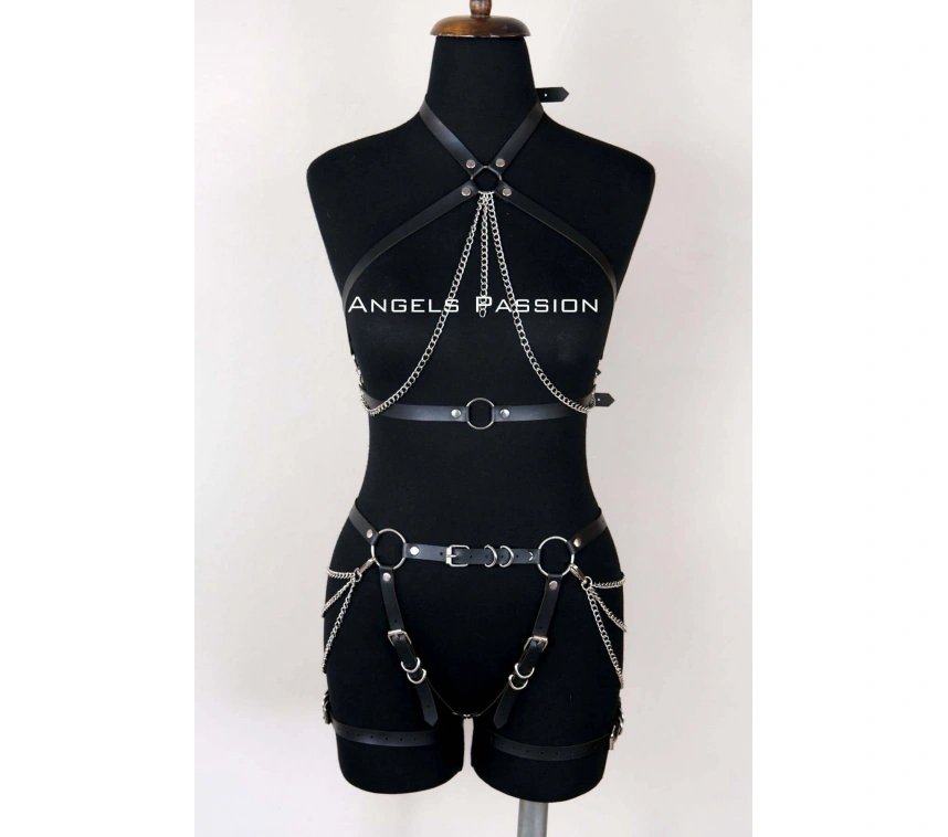 Tasma Ve Zincir Detaylı Şık Deri Harness, Deri Fantezi Giyim- Brf1225