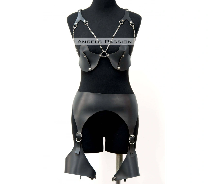 Erotik Deri Jartiyer Harness Takım, Kadın Fantezi İç Giyim - Brf1220