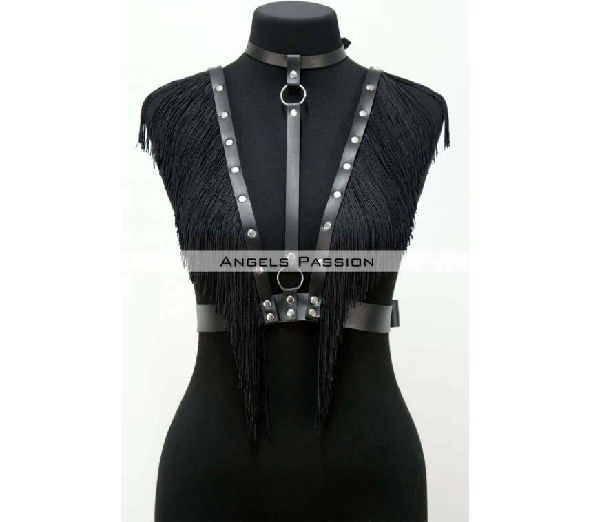 Püskül Ve Deri Büstiyer Harness, Püsküllü Clubwear, Deri Büstiyer - Brf767
