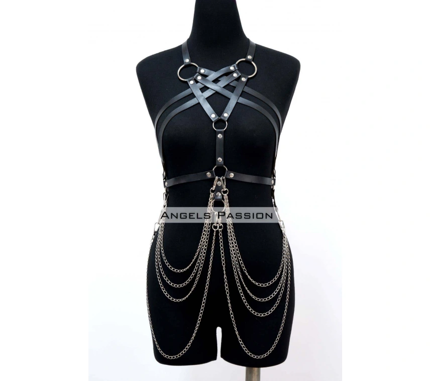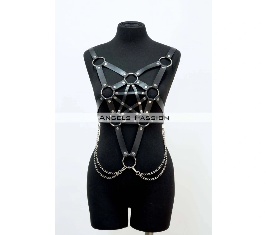 Zincir Detaylı Deri Göğüs Harness, Deri Fantezi Giyim, Elbise Aksesuar - Brf11