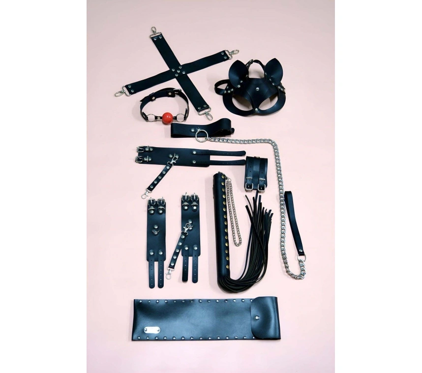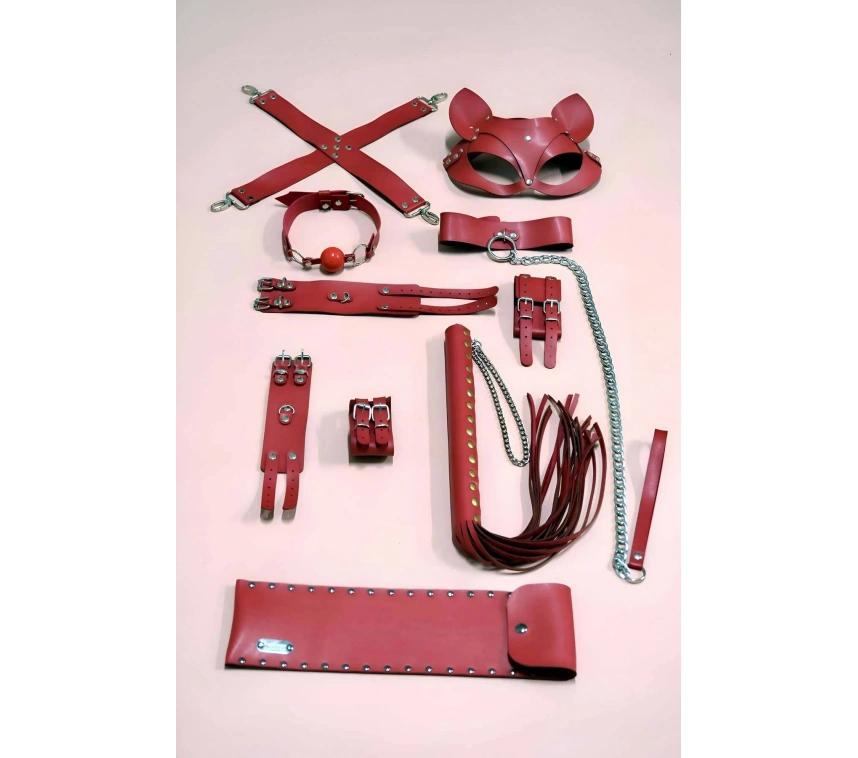 Kırbaç Kelepçe Set, 7'li Takım, Ayak - El Kelepçesi, Maske, Ağız Topu - Brf1311