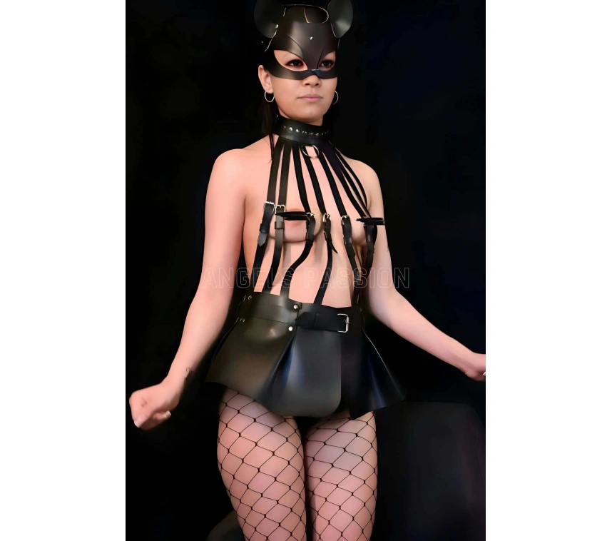 Zincirli Dansçı Kostüm, Seksi Deri Dansçı Harness Takım - Brf1084