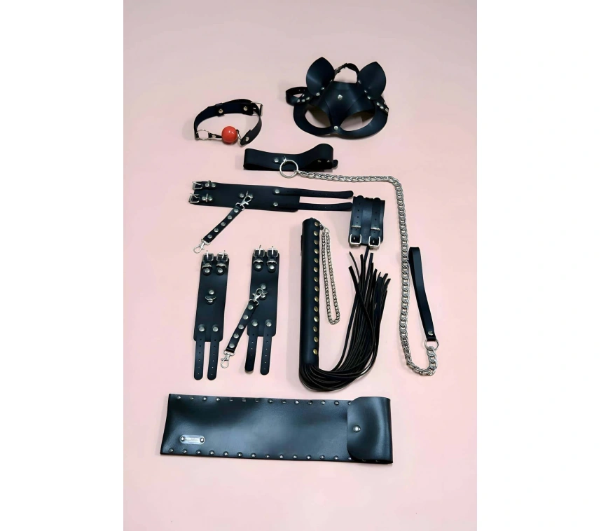 7'li Fantezi Kırbaç Set, Kelepçe Takım, Ayak Kelepçesi, Kedi Maskesi - Brf1309