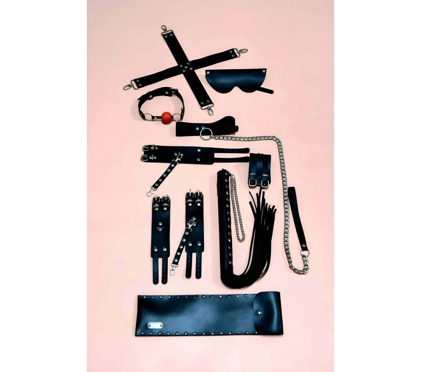 Kırbaçlı, Kelepçeli Full Set, Deri Fantezi Slave Set - Brf1342