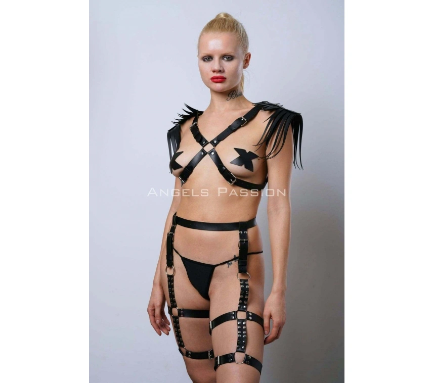 Deri Bayan İç Giyim, Fantazi Deri Jartiyer Ve Göğüs Harness Takım - Brf1238