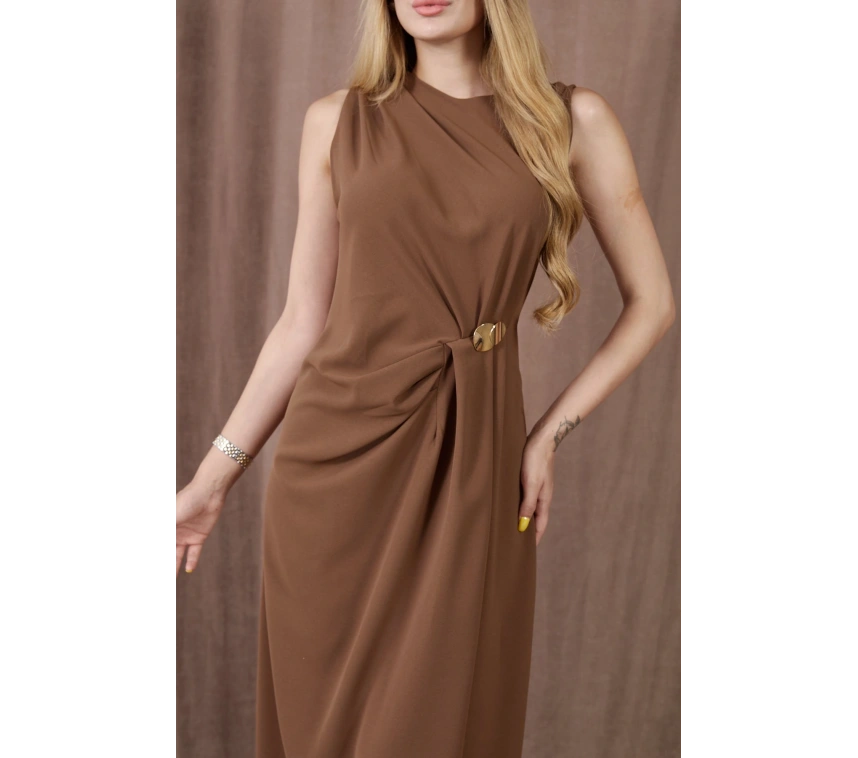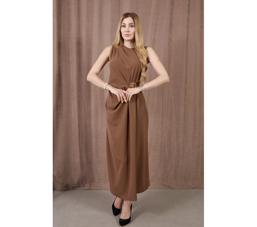 Kalın Askılı Yırtmaçlı Linda Kumaş Elbise
